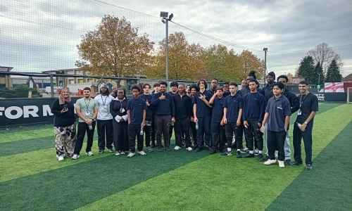 During the visit, pupils played football alongside Raheem and were given the chance to talk with him and ask thoughtful questions. These included what inspired him to pursue a career in football and why he attended a Pupil Referral Unit earlier in his life. Staff were incredibly proud of how respectful, engaged and mature the pupils were throughout the visit.