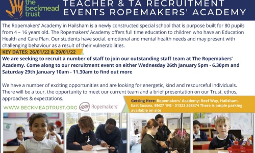 The Ropemakers' Academy in Hailsham, East Sussex are looking to recruit a number of staff to join our outstanding staff team
