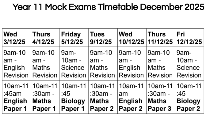 Year 11 Mock Exams |